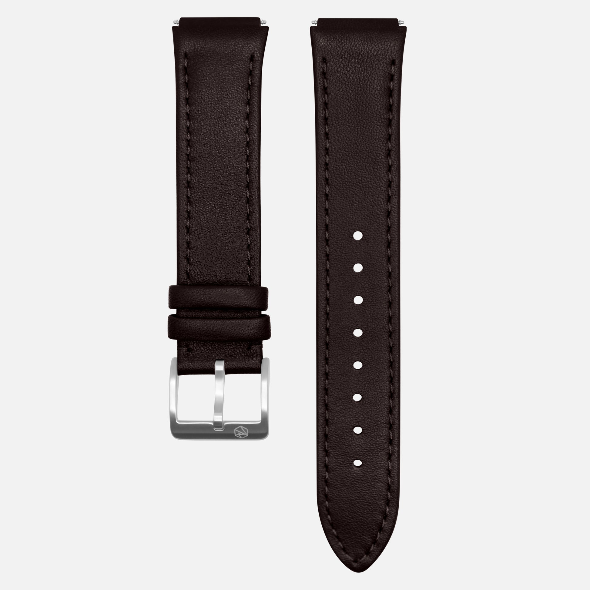 Afin d'accroître l'élégance subtile de LA FIDÈLE, nous avons conçu des bracelets en cuir sur mesure. Le bracelet en métal peut être remplacé facilement grâce au tourne-vis offert avec LA FIDÈLE. Vous avez le choix entre un cuir de veau brun chocolat ou le cuir saffiano noir élégant, tous deux provenant d'Italie.