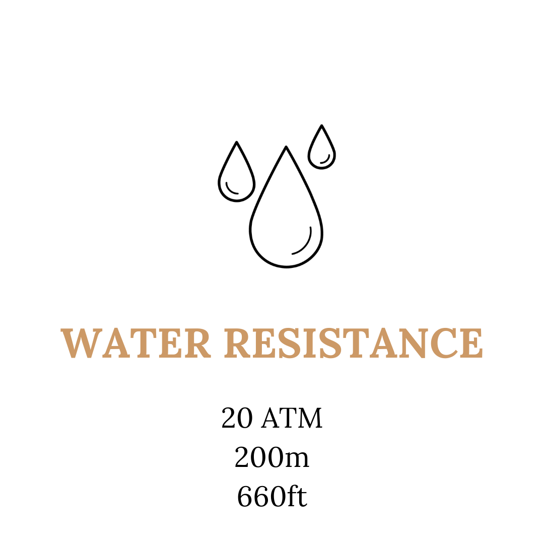 - WATER RESISTANCE: 20 ATM - 200m - 660 ft