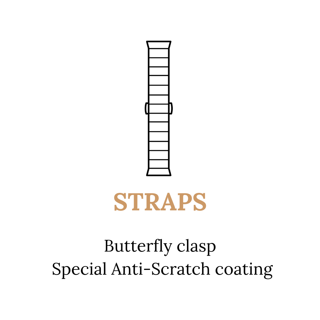 - CASE & BRACELET: Surgical Stainless Steel 316L with Special Anti-scratch Hardening treatment - butterfly clasp