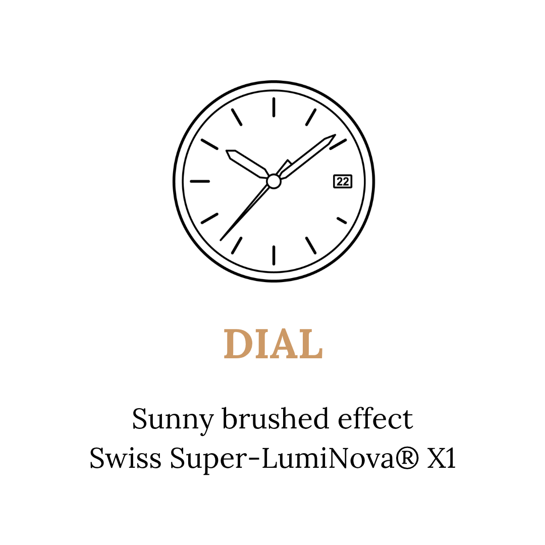 Sunlight brings the dial to life with a delicate sunburst effect.